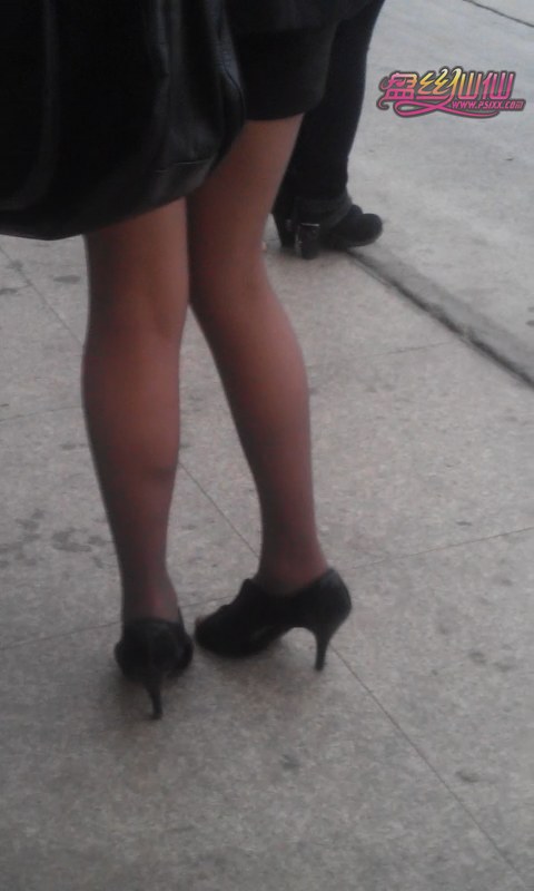 等车的灰丝纤细美腿