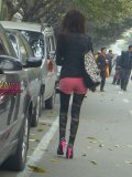 商业街,大白腿高跟性感妹妹